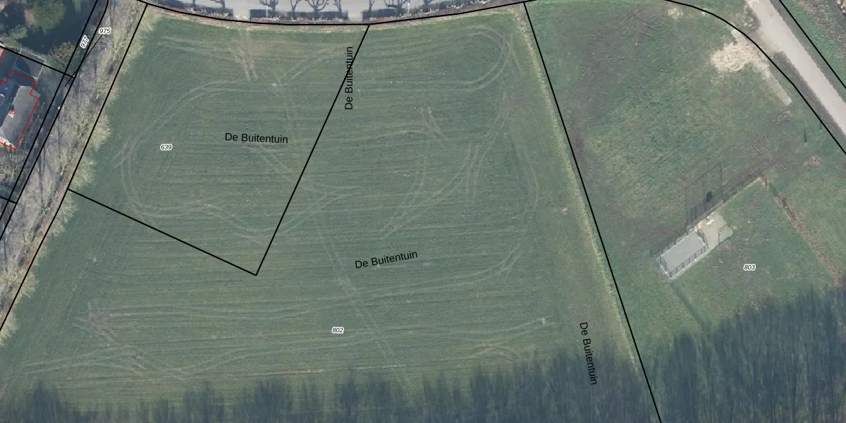 Het perceel waarop De Buitentuin 8 staat heeft een oppervlakte van 1,5 ha. Dit is een zeer groot perceel. De perceeloppervlakte wordt geregistreerd door het Kadaster. Gedetailleerde informatie over de maten van dit perceel kunt u vinden in het rapport Kadastrale kaart met maatvoering van De Buitentuin 8.