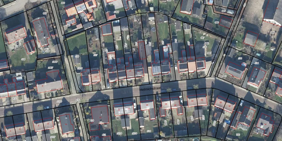 Het perceel waarop Helmichstraat 21 staat heeft een oppervlakte van 477 m². Dit is een groot perceel. De perceeloppervlakte wordt geregistreerd door het Kadaster. Gedetailleerde informatie over de maten van dit perceel kunt u vinden in het rapport Kadastrale kaart met maatvoering van Helmichstraat 21.