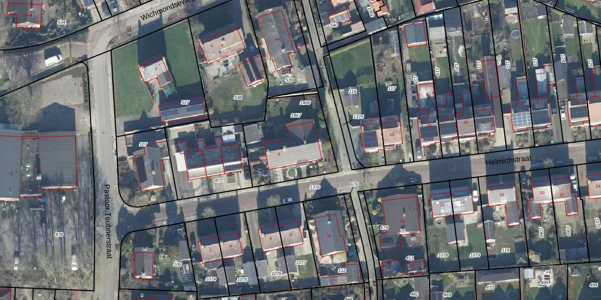 Helmichstraat 9 is gelegen op kadastraal perceel SDR00P1467. Deze kadastrale aanduiding is uniek en wordt gebruikt door het Kadaster om eigendomsrechten en andere zakelijke rechten vast te leggen. Het perceel maakt onderdeel uit van de kadastrale gemeente Steenderen.