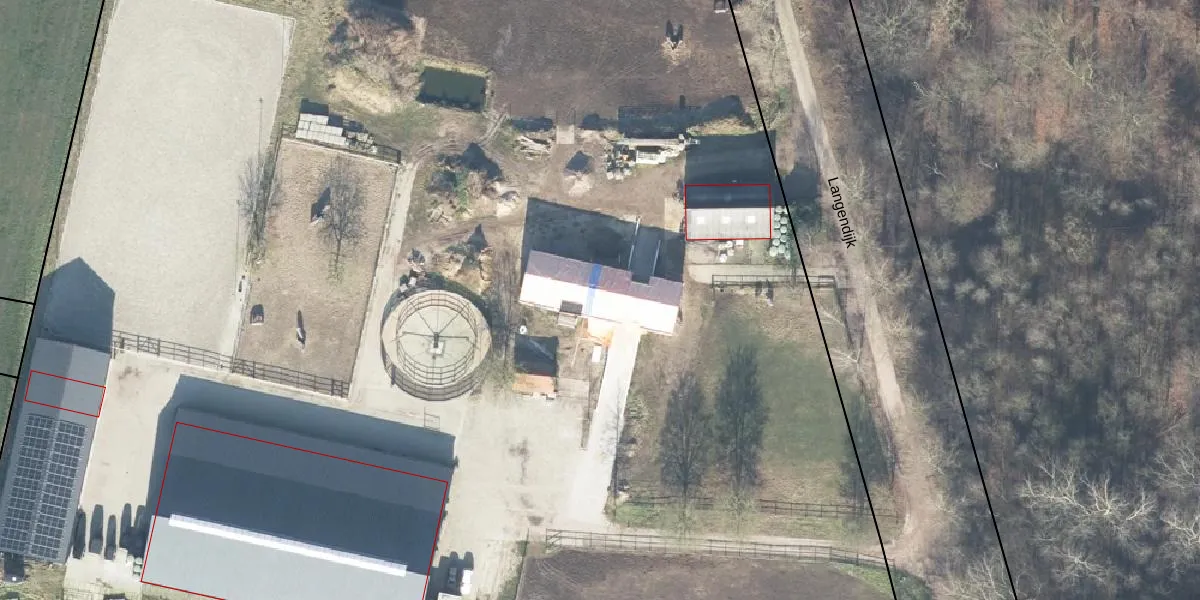 Het perceel waarop Langendijk 3 staat heeft een oppervlakte van 3,7 ha. Dit is een zeer groot perceel. De perceeloppervlakte wordt geregistreerd door het Kadaster. Gedetailleerde informatie over de maten van dit perceel kunt u vinden in het rapport Kadastrale kaart met maatvoering van Langendijk 3.