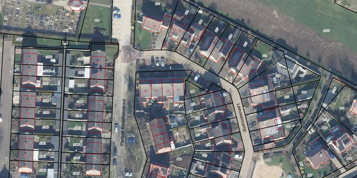 Het perceel waarop Leeuwencamp 17 staat heeft een oppervlakte van 2230 m². Dit is een zeer groot perceel. De perceeloppervlakte wordt geregistreerd door het Kadaster. Gedetailleerde informatie over de maten van dit perceel kunt u vinden in het rapport Kadastrale kaart met maatvoering van Leeuwencamp 17.