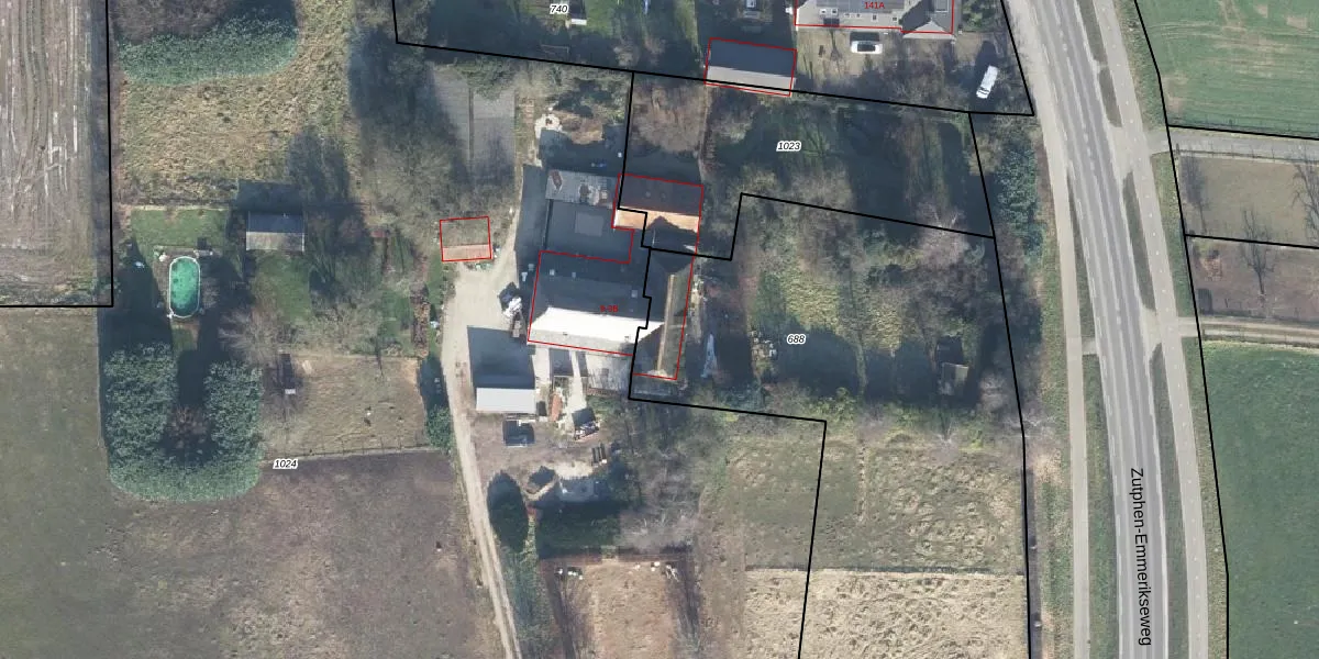 Het adres is gelegen op perceel 688 in de sectie W en de kadastrale gemeente Steenderen. De kadastrale aanduiding is aldus SDR00-W-688. Het perceel is 4370 m² groot. Dat is kleiner dan de gemiddelde perceeloppervlakte in Steenderen, dat op 9341,6 m² ligt. Het grootste perceel in de kadastrale gemeente is 32,6 ha. Het kleinste perceel heeft een oppervlakte van 0 m². Er zijn geen andere adressen aanwezig op het perceel. De huidige grenzen van het perceel zijn digitaal in de Basisregistratie Kadaster (BRK) geregistreerd op 16-11-2021.