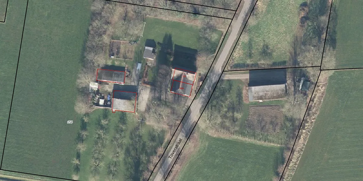 Het perceel waarop Toverstraat 18-A staat heeft een oppervlakte van 9830 m². Dit is een zeer groot perceel. De perceeloppervlakte wordt geregistreerd door het Kadaster. Gedetailleerde informatie over de maten van dit perceel kunt u vinden in het rapport Kadastrale kaart met maatvoering van Toverstraat 18-A.
