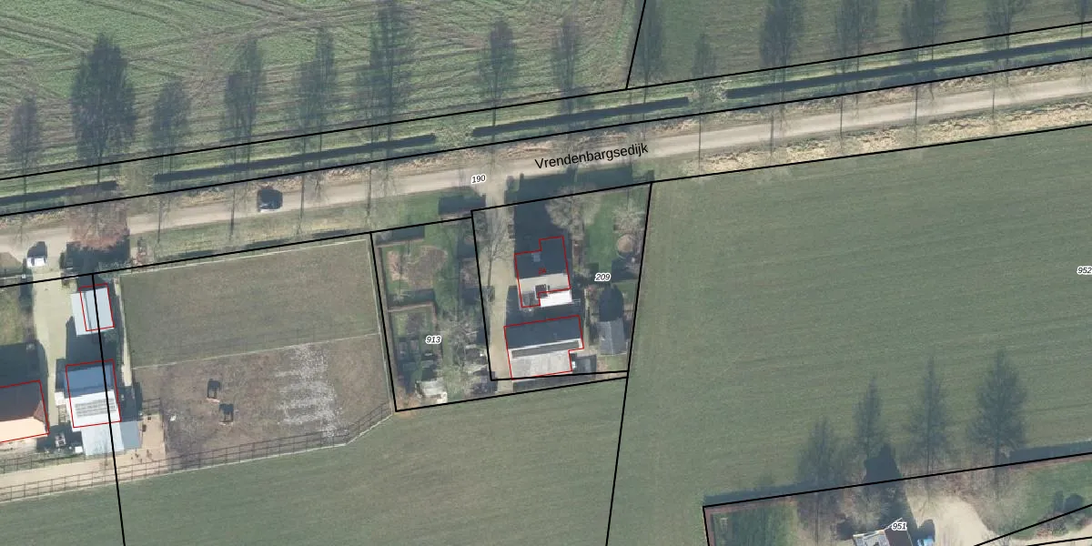 Het perceel waarop Vrendenbargsedijk 2-A staat heeft een oppervlakte van 980 m². Dit is een groot perceel. De perceeloppervlakte wordt geregistreerd door het Kadaster. Gedetailleerde informatie over de maten van dit perceel kunt u vinden in het rapport Kadastrale kaart met maatvoering van Vrendenbargsedijk 2-A.