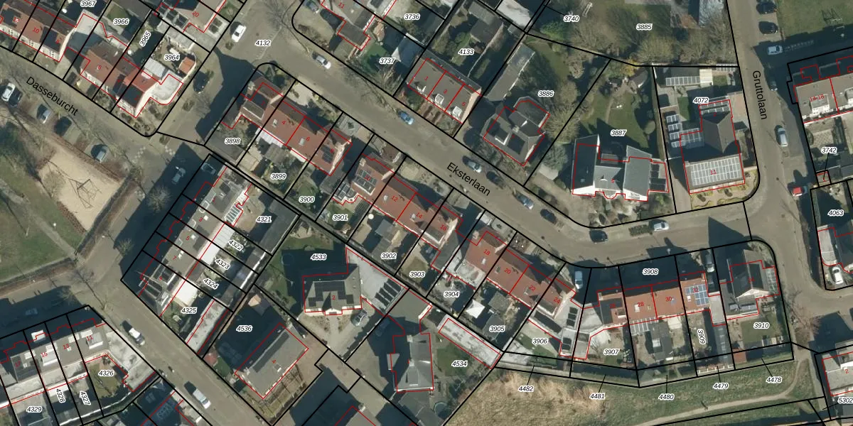 Het perceel waarop Eksterlaan 14 staat heeft een oppervlakte van 338 m². Dit is een groot perceel. De perceeloppervlakte wordt geregistreerd door het Kadaster. Gedetailleerde informatie over de maten van dit perceel kunt u vinden in het rapport Kadastrale kaart met maatvoering van Eksterlaan 14.