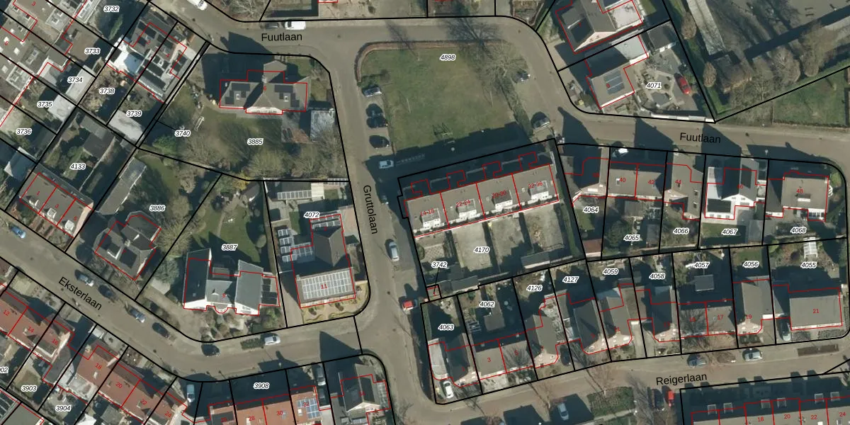 Het perceel waarop Fuutlaan 18 staat heeft een oppervlakte van 1119 m². Dit is een zeer groot perceel. De perceeloppervlakte wordt geregistreerd door het Kadaster. Gedetailleerde informatie over de maten van dit perceel kunt u vinden in het rapport Kadastrale kaart met maatvoering van Fuutlaan 18.