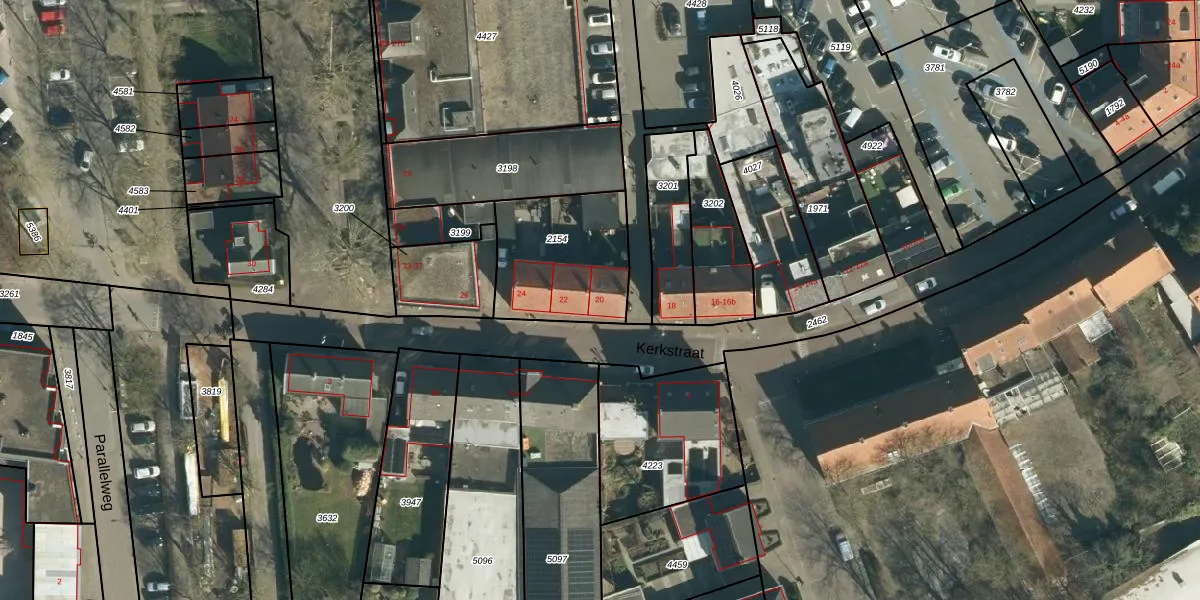 Het perceel waarop Kerkstraat 20 staat heeft een oppervlakte van 455 m². Dit is een groot perceel. De perceeloppervlakte wordt geregistreerd door het Kadaster. Gedetailleerde informatie over de maten van dit perceel kunt u vinden in het rapport Kadastrale kaart met maatvoering van Kerkstraat 20.