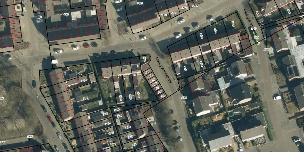 Het perceel waarop Markgravenstraat 61 staat heeft een oppervlakte van 20 m². Dit is een klein perceel. De perceeloppervlakte wordt geregistreerd door het Kadaster. Gedetailleerde informatie over de maten van dit perceel kunt u vinden in het rapport Kadastrale kaart met maatvoering van Markgravenstraat 61.