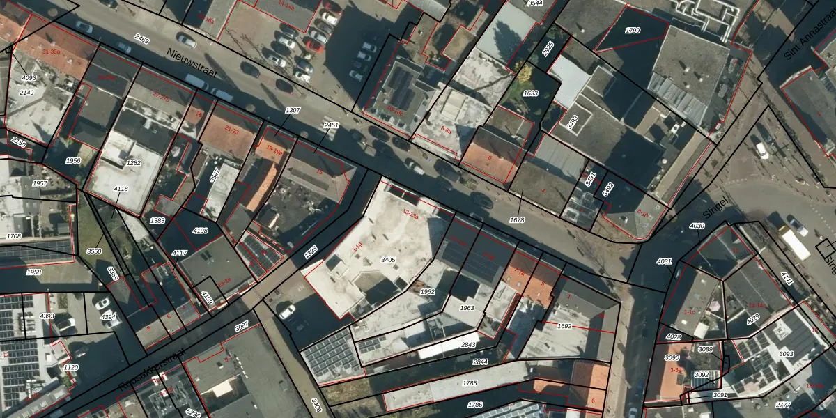 Het perceel waarop Nieuwstraat 13-a staat heeft een oppervlakte van 873 m². Dit is een groot perceel. De perceeloppervlakte wordt geregistreerd door het Kadaster. Gedetailleerde informatie over de maten van dit perceel kunt u vinden in het rapport Kadastrale kaart met maatvoering van Nieuwstraat 13-a.