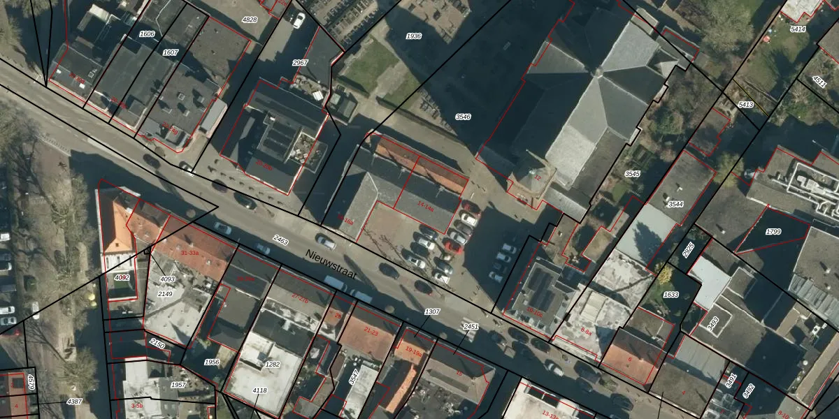 Het perceel waarop Nieuwstraat 14-a staat heeft een oppervlakte van 3718 m². Dit is een zeer groot perceel. De perceeloppervlakte wordt geregistreerd door het Kadaster. Gedetailleerde informatie over de maten van dit perceel kunt u vinden in het rapport Kadastrale kaart met maatvoering van Nieuwstraat 14-a.