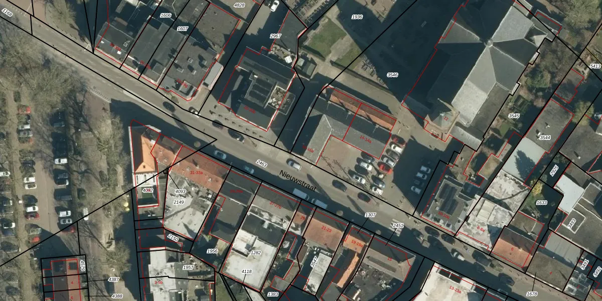 Het perceel waarop Nieuwstraat 16 staat heeft een oppervlakte van 3718 m². Dit is een zeer groot perceel. De perceeloppervlakte wordt geregistreerd door het Kadaster. Gedetailleerde informatie over de maten van dit perceel kunt u vinden in het rapport Kadastrale kaart met maatvoering van Nieuwstraat 16.