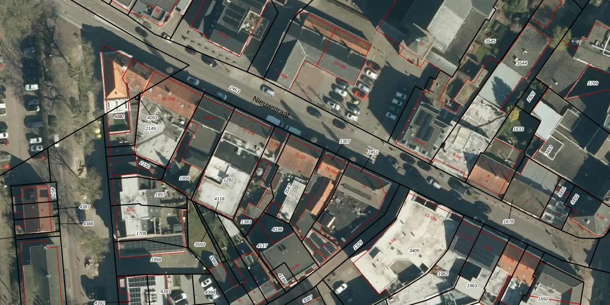 Het perceel waarop Nieuwstraat 21 staat heeft een oppervlakte van 282 m². Dit is een middelgroot perceel. De perceeloppervlakte wordt geregistreerd door het Kadaster. Gedetailleerde informatie over de maten van dit perceel kunt u vinden in het rapport Kadastrale kaart met maatvoering van Nieuwstraat 21.