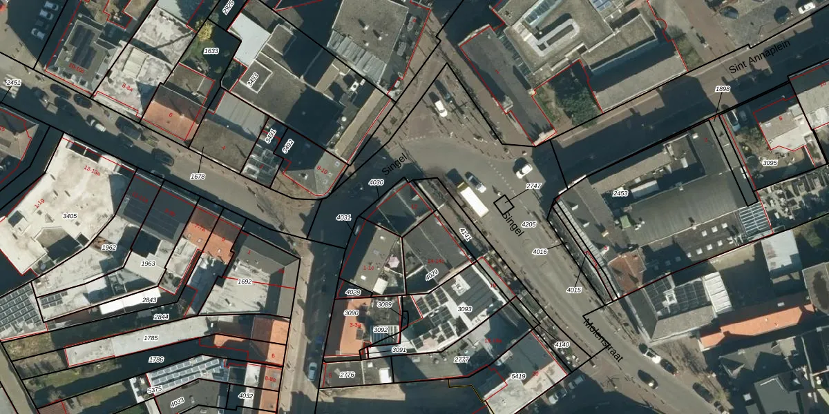 Het perceel waarop Singel 12 staat heeft een oppervlakte van 145 m². Dit is een middelgroot perceel. De perceeloppervlakte wordt geregistreerd door het Kadaster. Gedetailleerde informatie over de maten van dit perceel kunt u vinden in het rapport Kadastrale kaart met maatvoering van Singel 12.