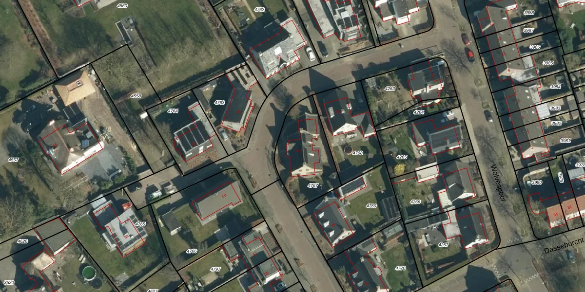Gebruik de zoekbalk of klik op een perceel voor informatie over de adressen binnen dit perceel.
