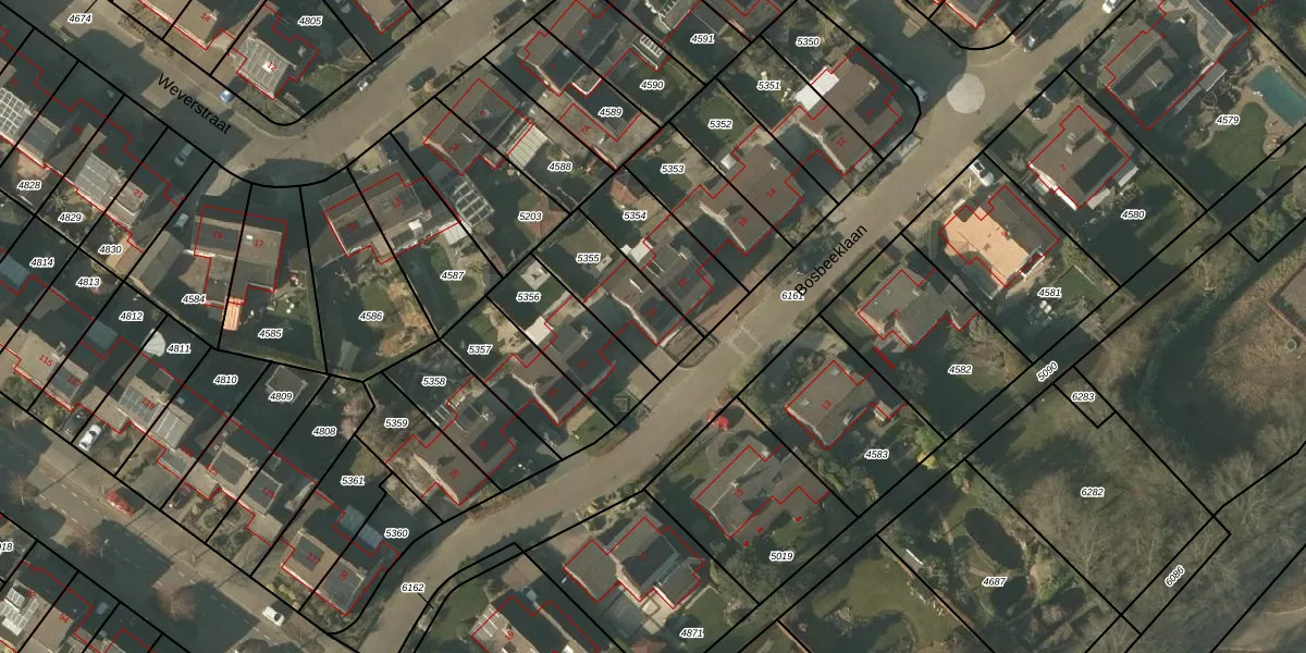 Bosbeeklaan 20 is gelegen op kadastraal perceel MBE00C5355. Deze kadastrale aanduiding is uniek en wordt gebruikt door het Kadaster om eigendomsrechten en andere zakelijke rechten vast te leggen. Het perceel maakt onderdeel uit van de kadastrale gemeente Maasbree.