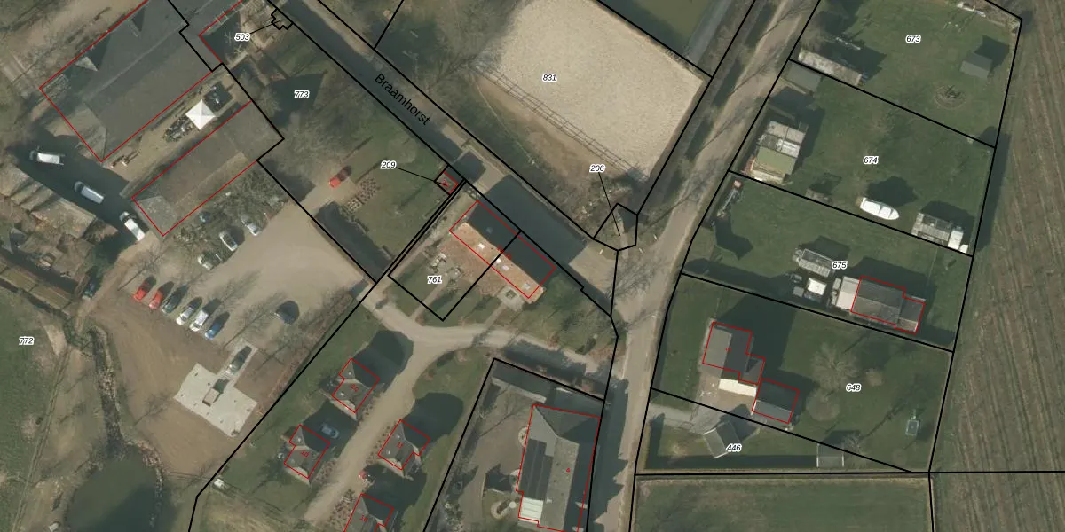 Het perceel waarop Braamhorst 1-a staat heeft een oppervlakte van 4271 m². Dit is een zeer groot perceel. De perceeloppervlakte wordt geregistreerd door het Kadaster. Gedetailleerde informatie over de maten van dit perceel kunt u vinden in het rapport Kadastrale kaart met maatvoering van Braamhorst 1-a.