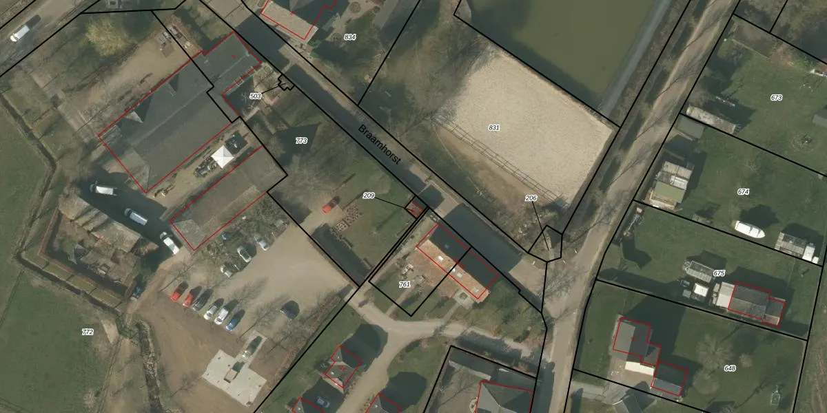 Braamhorst 2-A is gelegen op kadastraal perceel MBE00L209. Deze kadastrale aanduiding is uniek en wordt gebruikt door het Kadaster om eigendomsrechten en andere zakelijke rechten vast te leggen. Het perceel maakt onderdeel uit van de kadastrale gemeente Maasbree.