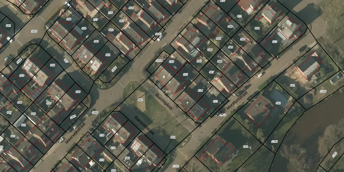 Het perceel waarop Burchtplein 2 staat heeft een oppervlakte van 227 m². Dit is een middelgroot perceel. De perceeloppervlakte wordt geregistreerd door het Kadaster. Gedetailleerde informatie over de maten van dit perceel kunt u vinden in het rapport Kadastrale kaart met maatvoering van Burchtplein 2.