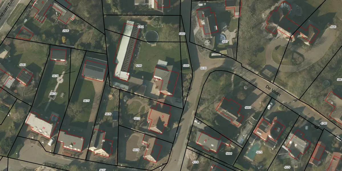 Het perceel waarop De Voort 10 staat heeft een oppervlakte van 1480 m². Dit is een zeer groot perceel. De perceeloppervlakte wordt geregistreerd door het Kadaster. Gedetailleerde informatie over de maten van dit perceel kunt u vinden in het rapport Kadastrale kaart met maatvoering van De Voort 10.
