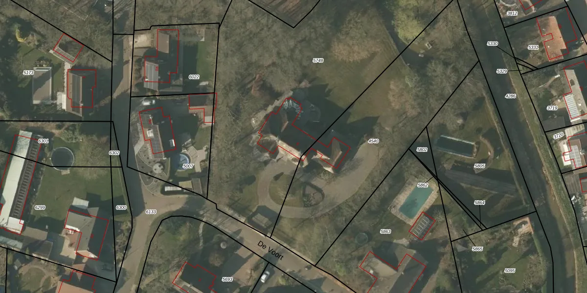 Het perceel waarop De Voort 6 staat heeft een oppervlakte van 4430 m². Dit is een zeer groot perceel. De perceeloppervlakte wordt geregistreerd door het Kadaster. Gedetailleerde informatie over de maten van dit perceel kunt u vinden in het rapport Kadastrale kaart met maatvoering van De Voort 6.
