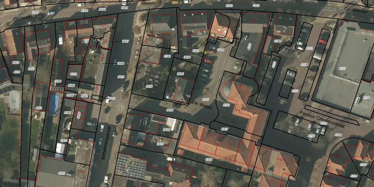 Het perceel waarop De Weem 1 staat heeft een oppervlakte van 315 m². Dit is een groot perceel. De perceeloppervlakte wordt geregistreerd door het Kadaster. Gedetailleerde informatie over de maten van dit perceel kunt u vinden in het rapport Kadastrale kaart met maatvoering van De Weem 1.