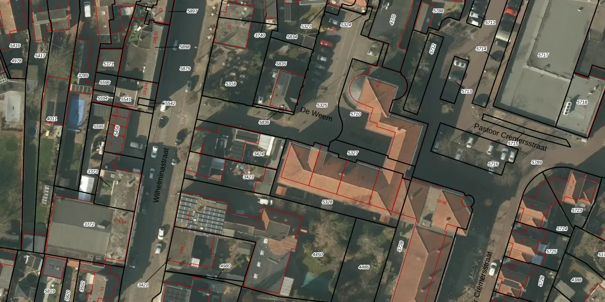 Het perceel waarop De Weem 2 staat heeft een oppervlakte van 780 m². Dit is een groot perceel. De perceeloppervlakte wordt geregistreerd door het Kadaster. Gedetailleerde informatie over de maten van dit perceel kunt u vinden in het rapport Kadastrale kaart met maatvoering van De Weem 2.