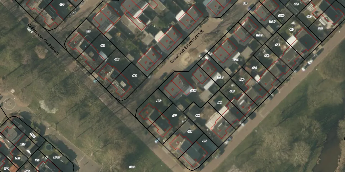 Het perceel waarop Graaf van Bierensstraat 19 staat heeft een oppervlakte van 560 m². Dit is een groot perceel. De perceeloppervlakte wordt geregistreerd door het Kadaster. Gedetailleerde informatie over de maten van dit perceel kunt u vinden in het rapport Kadastrale kaart met maatvoering van Graaf van Bierensstraat 19.