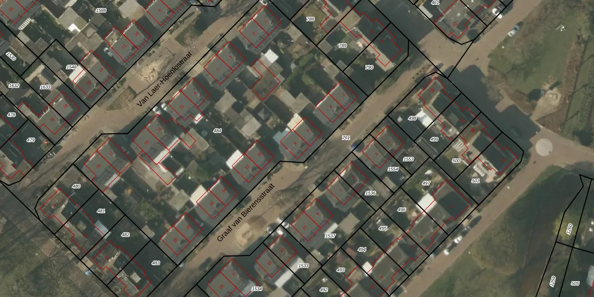 Het perceel waarop Graaf van Bierensstraat 8 staat heeft een oppervlakte van 4000 m². Dit is een zeer groot perceel. De perceeloppervlakte wordt geregistreerd door het Kadaster. Gedetailleerde informatie over de maten van dit perceel kunt u vinden in het rapport Kadastrale kaart met maatvoering van Graaf van Bierensstraat 8.
