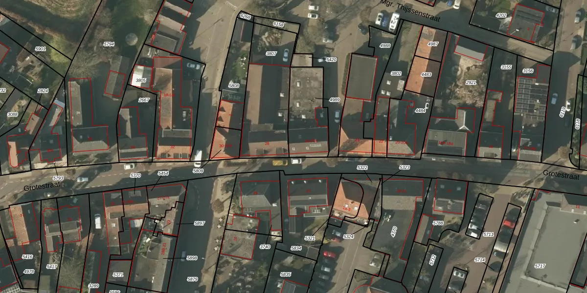 Het perceel waarop het adres ligt is MBE00-C-4989. De afkorting 'MBE00' staat voor kadastrale gemeente Maasbree. De gemiddelde perceelgrootte in Maasbree is 4468,15 m². Dit perceel is kleiner: de perceeloppervlakte bedraagt 375 m². Het kleinste perceel in de kadastrale gemeente is 0 m² groot. De grootste perceeloppervlakte is 26,2 ha. Op het perceel zijn 2 adressen aanwezig. De huidige grenzen van het perceel zijn digitaal in de Basisregistratie Kadaster (BRK) geregistreerd op 10-03-2008.