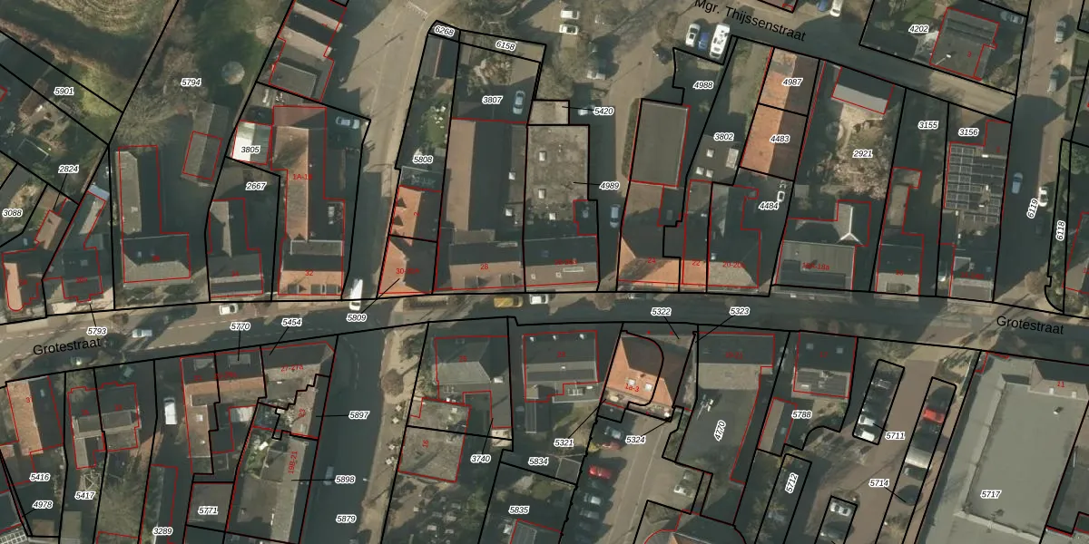 Grotestraat 26 is gelegen op kadastraal perceel MBE00C4989. Deze kadastrale aanduiding is uniek en wordt gebruikt door het Kadaster om eigendomsrechten en andere zakelijke rechten vast te leggen. Het perceel maakt onderdeel uit van de kadastrale gemeente Maasbree.