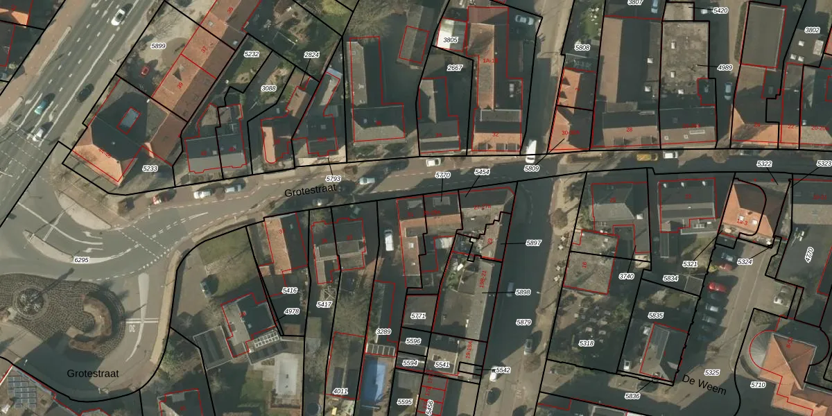 Grotestraat 31 is gelegen op kadastraal perceel MBE00C3289. Deze kadastrale aanduiding is uniek en wordt gebruikt door het Kadaster om eigendomsrechten en andere zakelijke rechten vast te leggen. Het perceel maakt onderdeel uit van de kadastrale gemeente Maasbree.