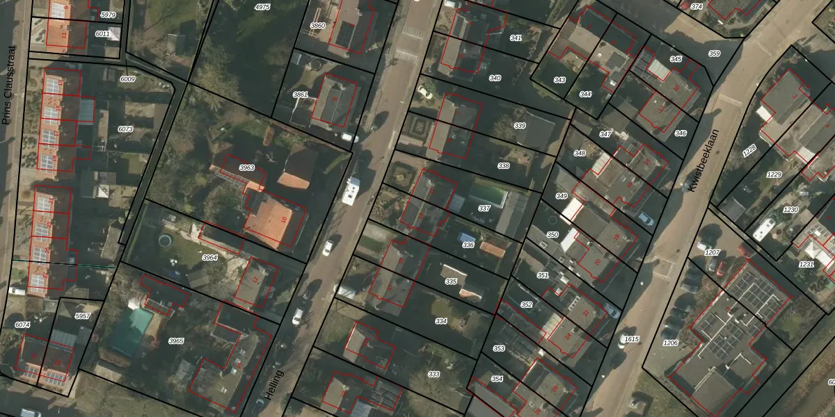 Het perceel waarop Helling 13 staat heeft een oppervlakte van 343 m². Dit is een groot perceel. De perceeloppervlakte wordt geregistreerd door het Kadaster. Gedetailleerde informatie over de maten van dit perceel kunt u vinden in het rapport Kadastrale kaart met maatvoering van Helling 13.