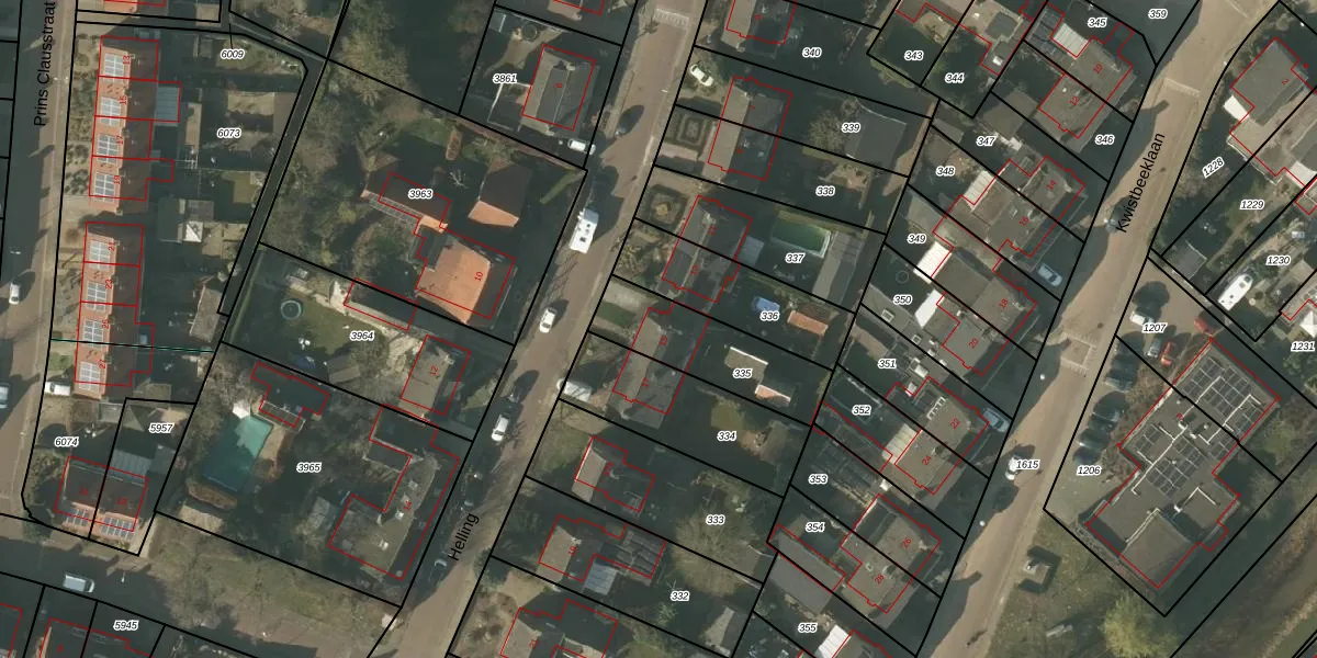 Het perceel waarop Helling 15 staat heeft een oppervlakte van 343 m². Dit is een groot perceel. De perceeloppervlakte wordt geregistreerd door het Kadaster. Gedetailleerde informatie over de maten van dit perceel kunt u vinden in het rapport Kadastrale kaart met maatvoering van Helling 15.