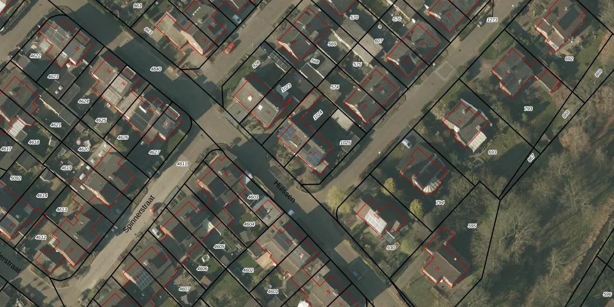 Het perceel waarop Huissen 23 staat heeft een oppervlakte van 318 m². Dit is een groot perceel. De perceeloppervlakte wordt geregistreerd door het Kadaster. Gedetailleerde informatie over de maten van dit perceel kunt u vinden in het rapport Kadastrale kaart met maatvoering van Huissen 23.