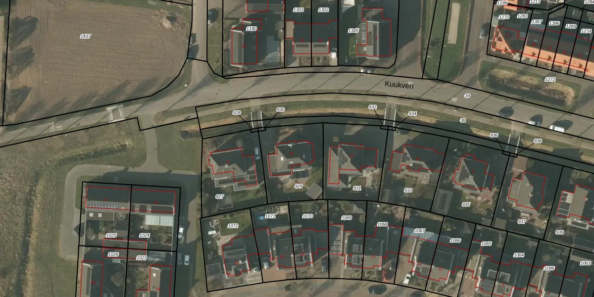 Het perceel waarop Kuukven 15 staat heeft een oppervlakte van 519 m². Dit is een groot perceel. De perceeloppervlakte wordt geregistreerd door het Kadaster. Gedetailleerde informatie over de maten van dit perceel kunt u vinden in het rapport Kadastrale kaart met maatvoering van Kuukven 15.