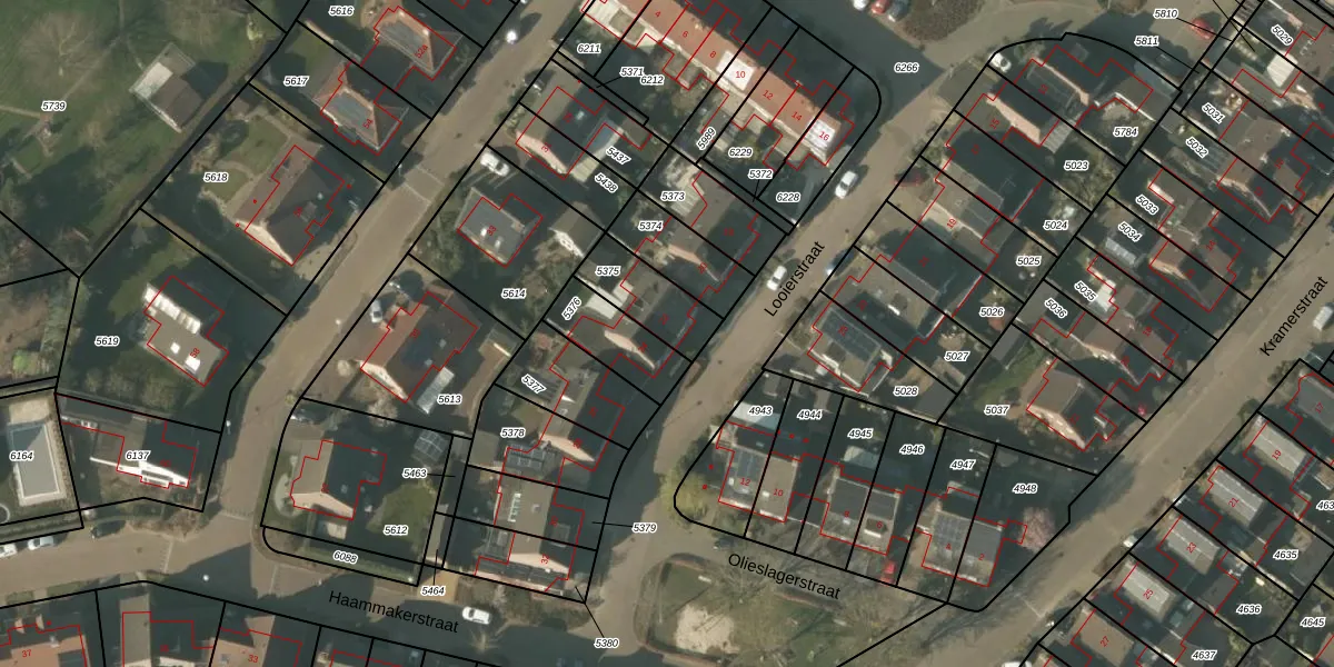 Gebruik de zoekbalk of klik op een perceel voor informatie over de adressen binnen dit perceel.
