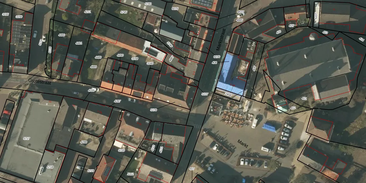 Het perceel waarop Markt 23 staat heeft een oppervlakte van 369 m². Dit is een groot perceel. De perceeloppervlakte wordt geregistreerd door het Kadaster. Gedetailleerde informatie over de maten van dit perceel kunt u vinden in het rapport Kadastrale kaart met maatvoering van Markt 23.