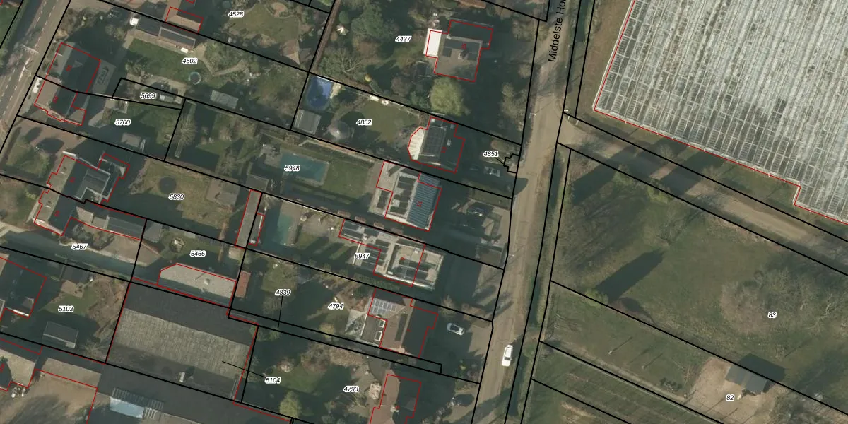 Gebruik de zoekbalk of klik op een perceel voor informatie over de adressen binnen dit perceel.