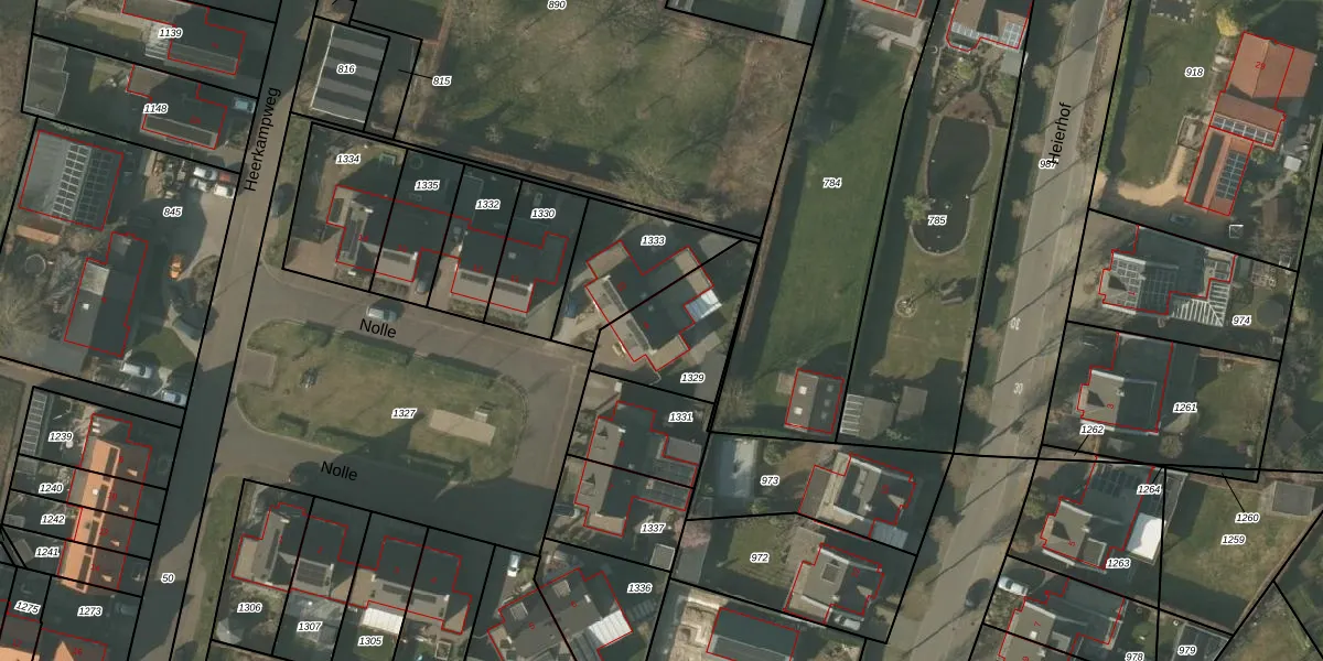 Het perceel waarop Nolle 9 staat heeft een oppervlakte van 334 m². Dit is een groot perceel. De perceeloppervlakte wordt geregistreerd door het Kadaster. Gedetailleerde informatie over de maten van dit perceel kunt u vinden in het rapport Kadastrale kaart met maatvoering van Nolle 9.