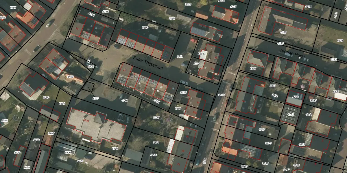 Het perceel waarop Pater Thijsstraat 1 staat heeft een oppervlakte van 560 m². Dit is een groot perceel. De perceeloppervlakte wordt geregistreerd door het Kadaster. Gedetailleerde informatie over de maten van dit perceel kunt u vinden in het rapport Kadastrale kaart met maatvoering van Pater Thijsstraat 1.