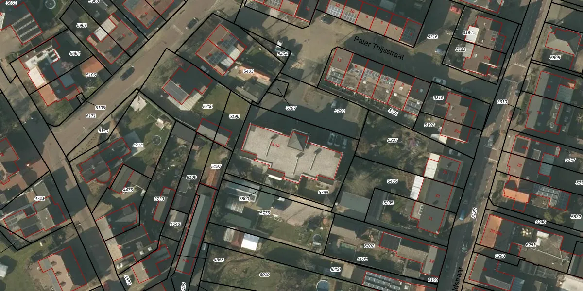 Het perceel waarop Pater Thijsstraat 19 staat heeft een oppervlakte van 980 m². Dit is een groot perceel. De perceeloppervlakte wordt geregistreerd door het Kadaster. Gedetailleerde informatie over de maten van dit perceel kunt u vinden in het rapport Kadastrale kaart met maatvoering van Pater Thijsstraat 19.