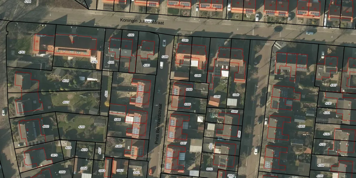 Het perceel waarop Prins Bernhardstraat 1 staat heeft een oppervlakte van 185 m². Dit is een middelgroot perceel. De perceeloppervlakte wordt geregistreerd door het Kadaster. Gedetailleerde informatie over de maten van dit perceel kunt u vinden in het rapport Kadastrale kaart met maatvoering van Prins Bernhardstraat 1.