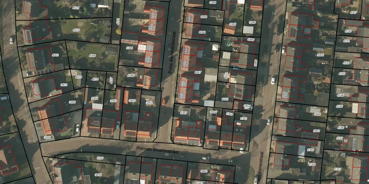 Het perceel waarop Prins Bernhardstraat 11 staat heeft een oppervlakte van 770 m². Dit is een groot perceel. De perceeloppervlakte wordt geregistreerd door het Kadaster. Gedetailleerde informatie over de maten van dit perceel kunt u vinden in het rapport Kadastrale kaart met maatvoering van Prins Bernhardstraat 11.