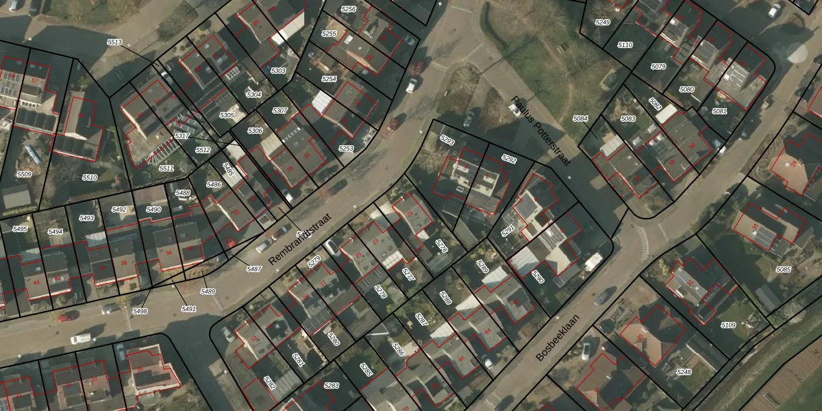 Rembrandtstraat 21 is gelegen op kadastraal perceel MBE00C5276. Deze kadastrale aanduiding is uniek en wordt gebruikt door het Kadaster om eigendomsrechten en andere zakelijke rechten vast te leggen. Het perceel maakt onderdeel uit van de kadastrale gemeente Maasbree.