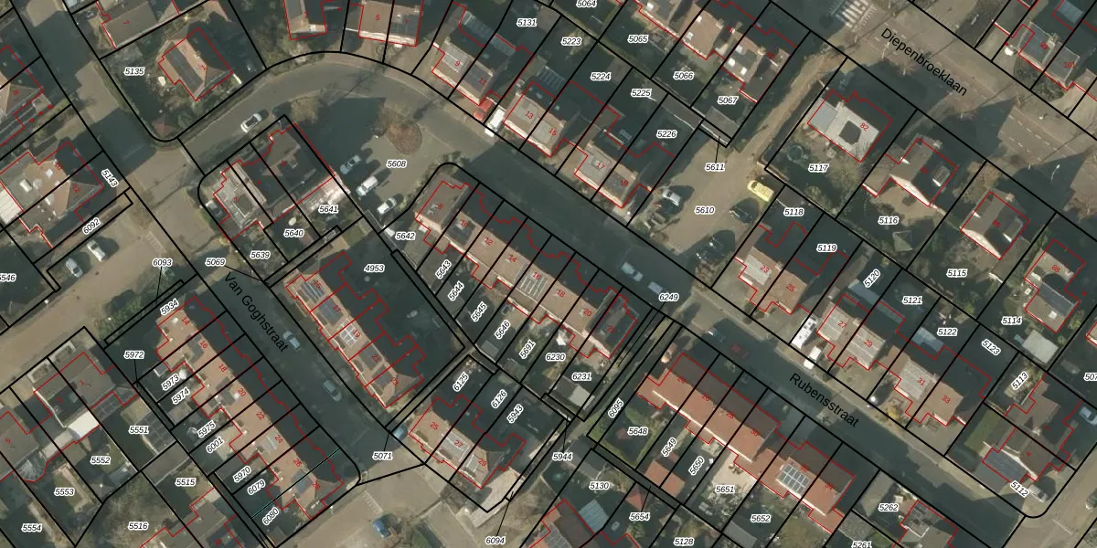 Gebruik de zoekbalk of klik op een perceel voor informatie over de adressen binnen dit perceel.