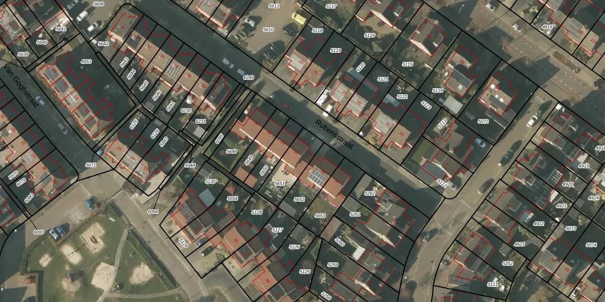 Rubensstraat 30 is gelegen op kadastraal perceel MBE00C5651. Deze kadastrale aanduiding is uniek en wordt gebruikt door het Kadaster om eigendomsrechten en andere zakelijke rechten vast te leggen. Het perceel maakt onderdeel uit van de kadastrale gemeente Maasbree.