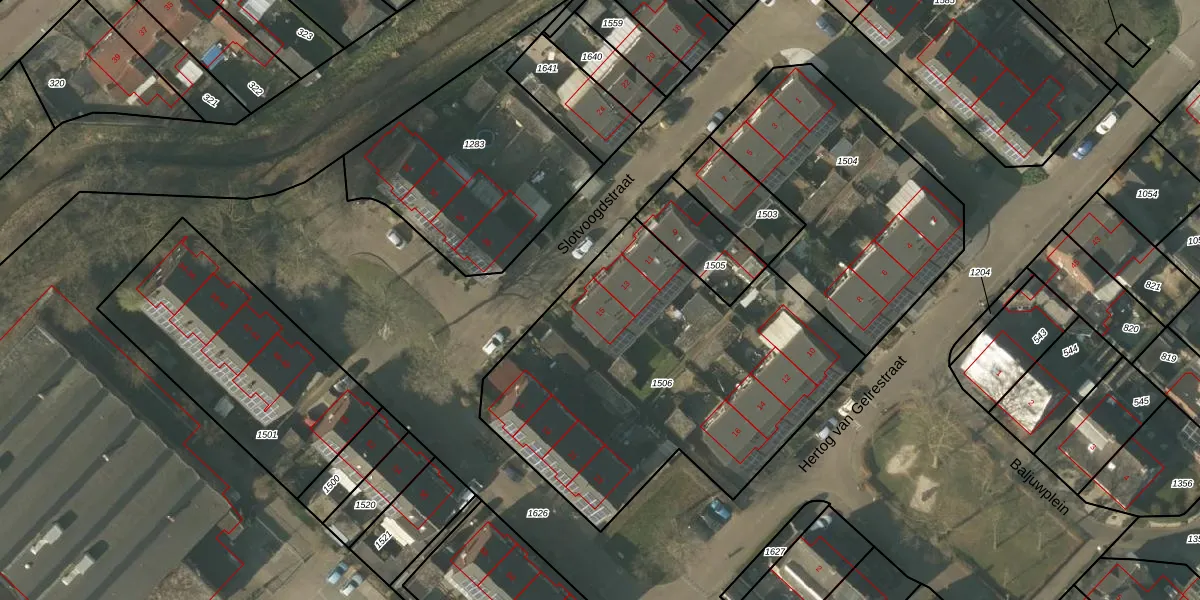 Het perceel waarop Slotvoogdstraat 15 staat heeft een oppervlakte van 1820 m². Dit is een zeer groot perceel. De perceeloppervlakte wordt geregistreerd door het Kadaster. Gedetailleerde informatie over de maten van dit perceel kunt u vinden in het rapport Kadastrale kaart met maatvoering van Slotvoogdstraat 15.