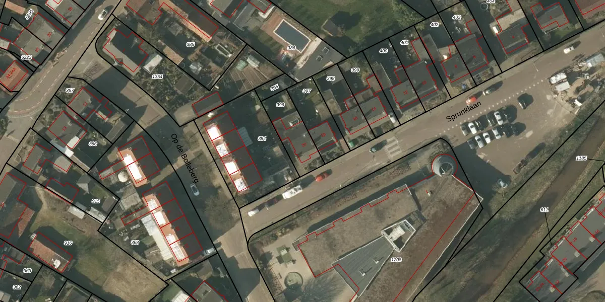 Sprunklaan 20 is gelegen op kadastraal perceel MBE00I396. Deze kadastrale aanduiding is uniek en wordt gebruikt door het Kadaster om eigendomsrechten en andere zakelijke rechten vast te leggen. Het perceel maakt onderdeel uit van de kadastrale gemeente Maasbree.