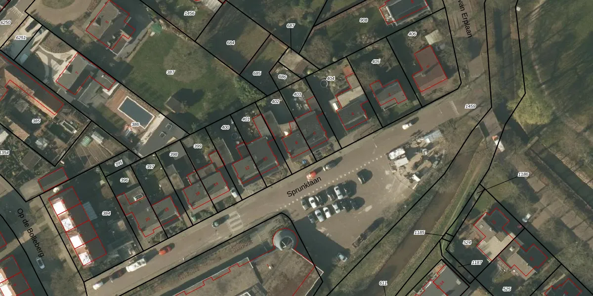 Sprunklaan 8 is gelegen op kadastraal perceel MBE00I402. Deze kadastrale aanduiding is uniek en wordt gebruikt door het Kadaster om eigendomsrechten en andere zakelijke rechten vast te leggen. Het perceel maakt onderdeel uit van de kadastrale gemeente Maasbree.