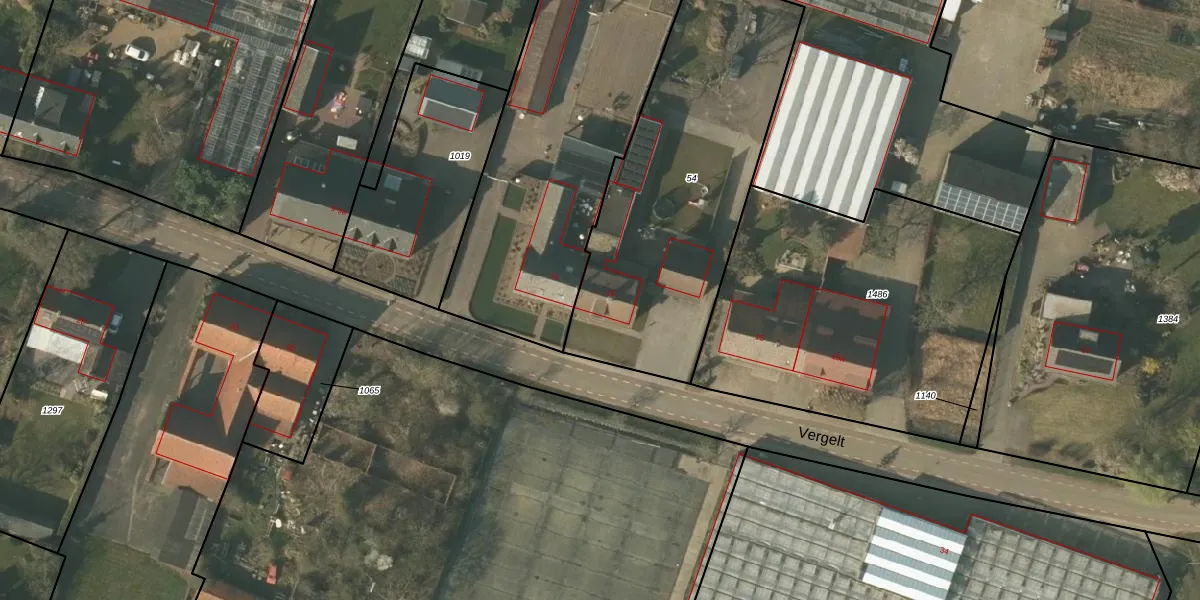 Het perceel waarop Vergelt 13 staat heeft een oppervlakte van 1390 m². Dit is een zeer groot perceel. De perceeloppervlakte wordt geregistreerd door het Kadaster. Gedetailleerde informatie over de maten van dit perceel kunt u vinden in het rapport Kadastrale kaart met maatvoering van Vergelt 13.
